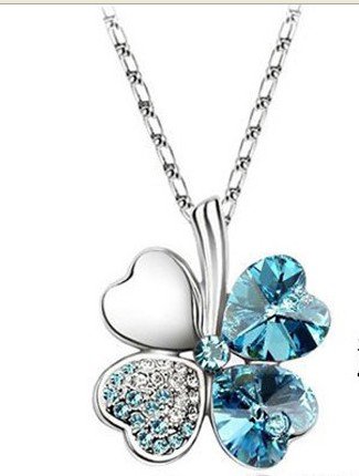 Browse » Home » » #9: Jewelry diamente four leaf clover heart 21*26mm pendant necklace with 45cm chain light blue